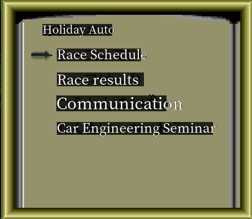 If you recall, all the way back to one of the first posts - the first option for the magazine is ‘Schedule Race’. I was assuming this meant ‘Challenge the Zero 4 King’ - the one that is shown in the second option ‘View Race Results’. Now I'm not so sure..