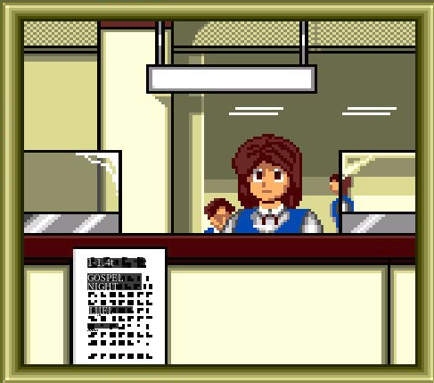 Hey, I’ve never seen this before. We see a side on view, as Hiro slowly walks off from the reception to, presumably register himself somewhere. He then returns back to reception.
