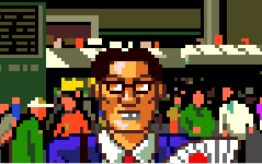 Incidentally, I love this clearly bad Japanese stereotype… which I guess is made by the Japanese themselves. This guy has goofy overbite, a suit, black parted hair and glasses. Not to mention he's fanning himself with a paper fan with the rising sun on it.