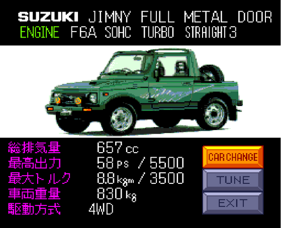 The Cars and Parts menu now shows us our our Suzuki Jimny!.