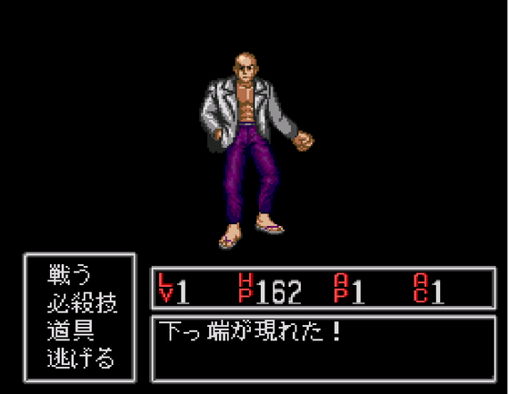 Gah! Another enemy type! This guy looks like trouble, what with his suit jacket, bald head and thongs (Sorry, I forgot we’re in the USA… flip flops…)