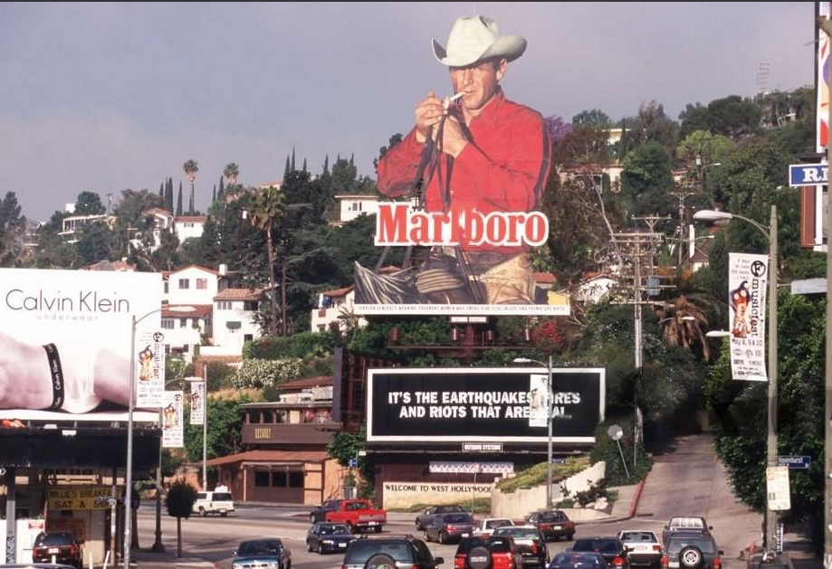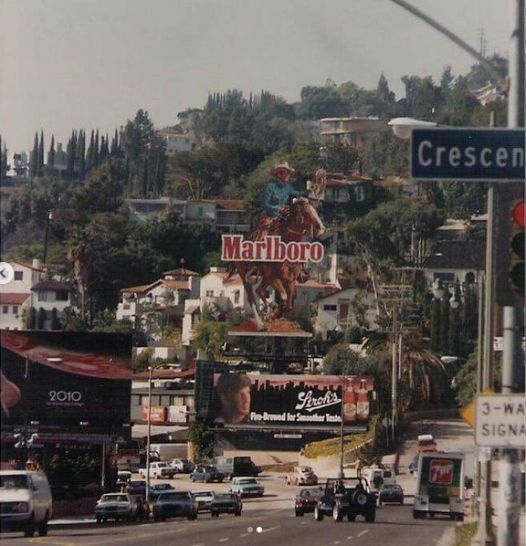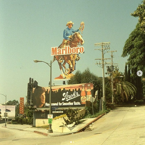 Going down a rabbit hole, I found out that for 20 of years, across from the Chateau Marmont on Sunset Boulevard in Hollywood always had a large statue of the Marlboro man, which would change, periodically until it was removed in the late 1990's for cigarette advertising reasons.