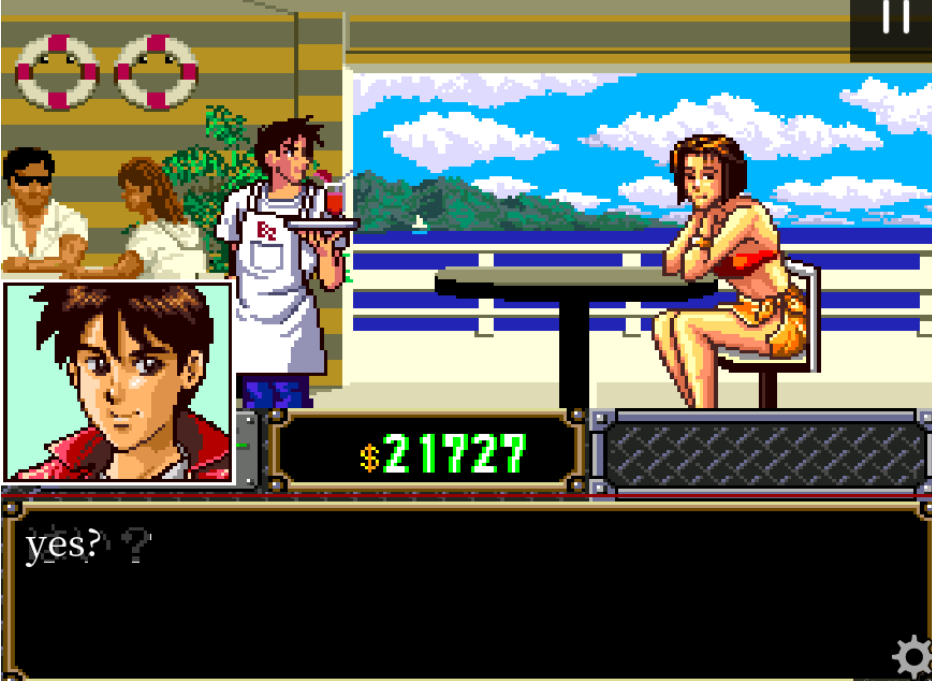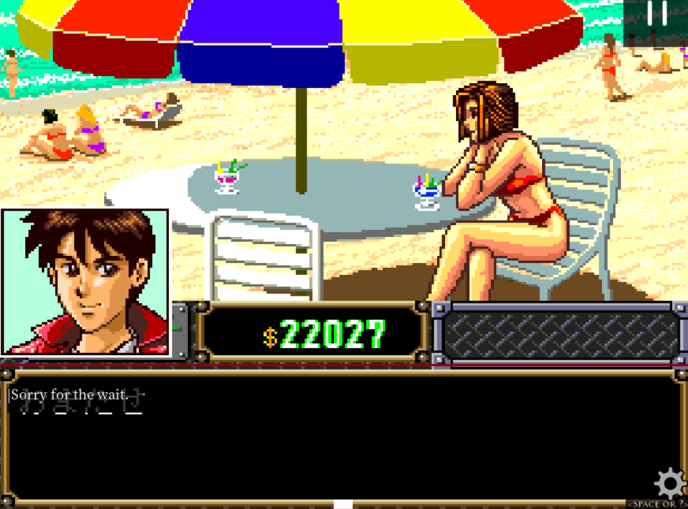 And now we find ourselves at the beach with the lovely stranger. Since the game hasn't deigned to give her a name, let's call her Brittany, because that sounds like the name of a girl you'd meet on the beach in Florida in the 90s.