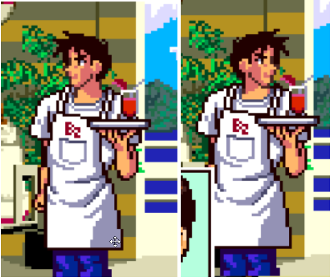Well that was quick. Hiro has a job now as a waiter, delivering drinks.