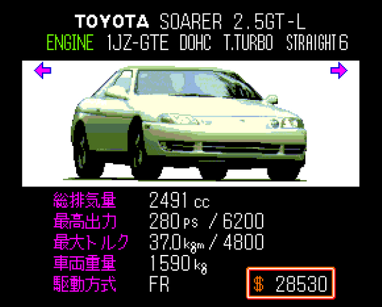 The Soarer is in the front cover of this game! And now we've seen both it and the FD3S RX7, it fills me with confidence that the mighty Honda NSX, also featured on the cover, might actually be in this game!