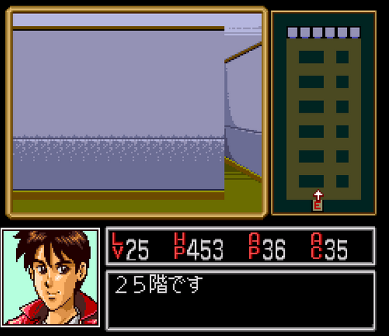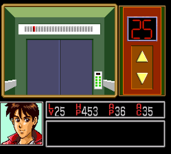 Ok. I'm curious now. Forget what that guy said, we’re tough. Hiro is level 25, and the top floor is level 25. We’ve got 453 hp.. Let's skip all this early stuff and go straight to the top!
