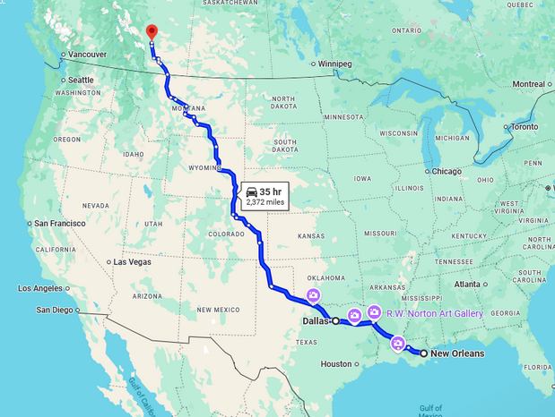 Alright, now we're talking. 35 hours from New Orleans to Calgary by way of Dallas.