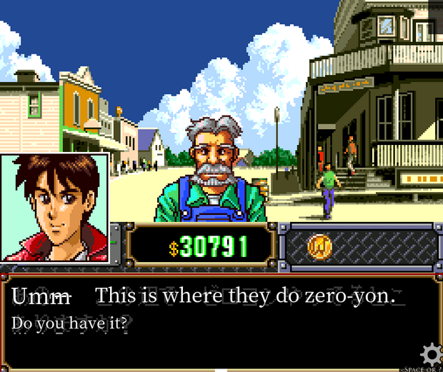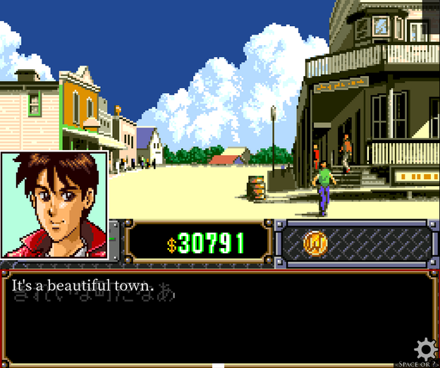 Ah. This old west town is replete with its own country bumpkins. Sadly I didn’t catch it in time, but he’s missing a few teeth mouth when he opens it to speak.
