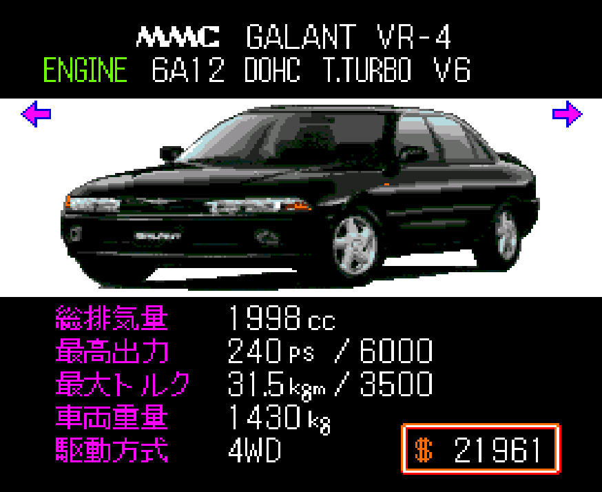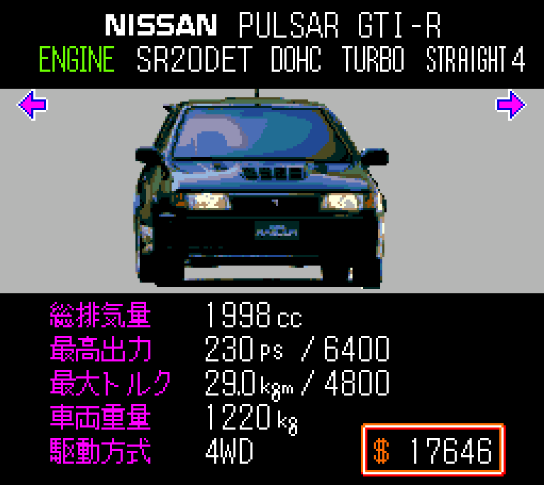 So, I picked my three, already tuned AWD cars, the Galant, the Pulsar and the GTR, and split what parts I did have between them.
