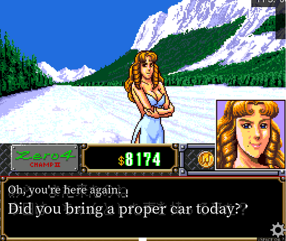 If one of our cars is mid-engined or rear wheel drive, she'll pick that over our all wheel drive cars because she knows it won't perform well on the ice. In addition - she’ll look at the mods on the cars, and pick the one with the least mods. This invalidates the tactic we’ve used for the entire game which is to keep swapping the mods into the car we want to win the race.