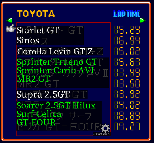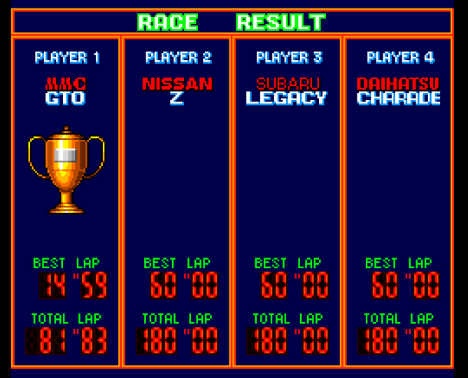 Though it really doesn’t mean much today, I love to see that they added this mode in. In another life, had I been japanese in the 1990's with friends or siblings with the same esoteric interests as weird as me, and somehow they were all familiar with this game and its controls, I could see a bit of fun trying to race different types of cars against one another. Hell, we ended up doing just that in Gran Turismo a few years later.