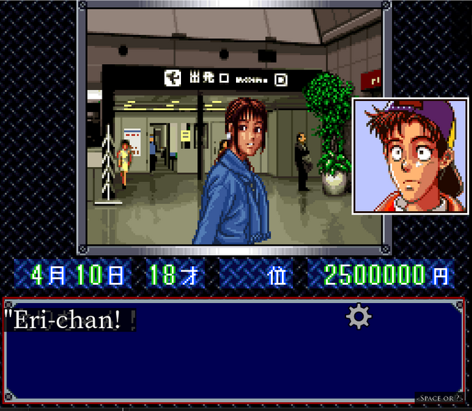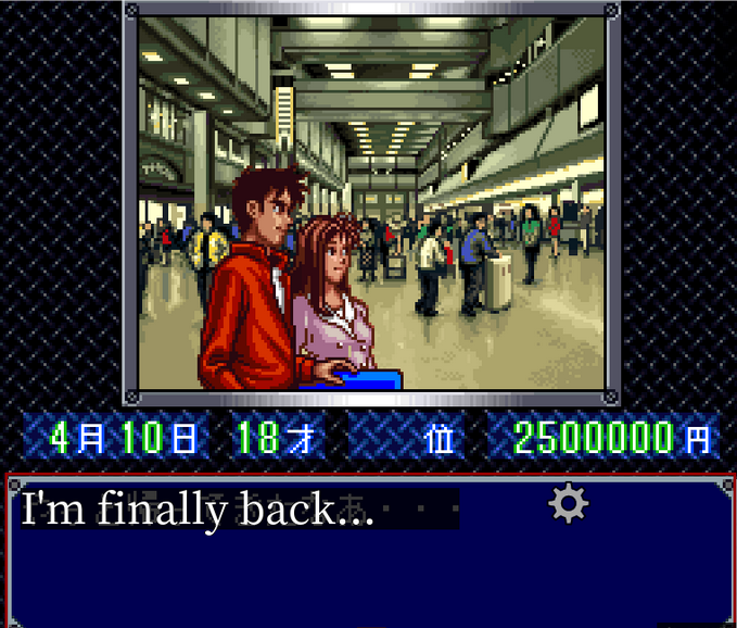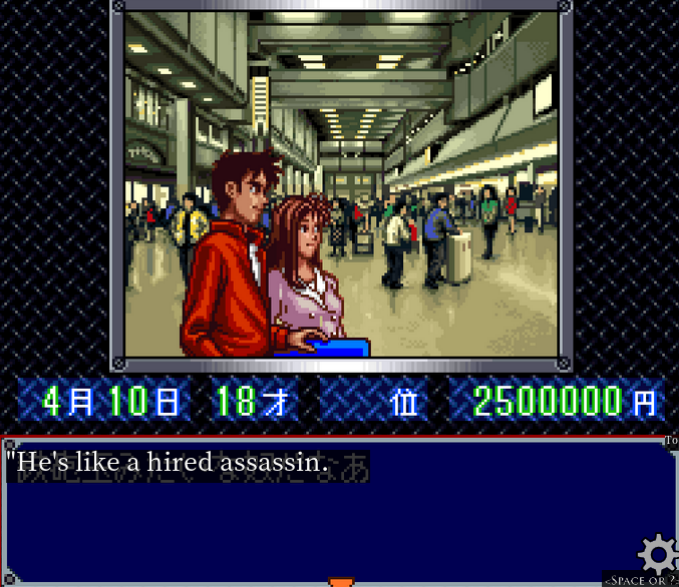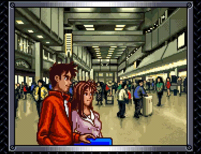 The game opens, and we see our hero Hiro and his girlfriend Kayo Chan in the airport, having just arrived back home in Tokyo.
