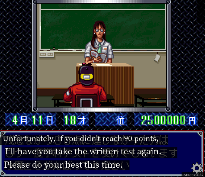 Unfortunately, if you didn't reach 90 points, I'll have you take the written test again.