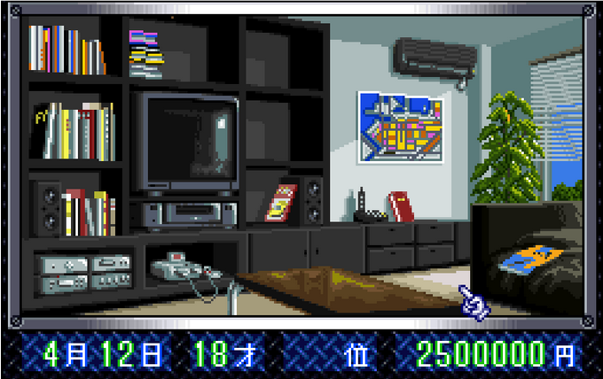 We no longer have the ‘CAR’ bag used to travel to the Driving School, and there’s a poster draped over the couch. Additionally next to the tv speakers there’s a pamphlet that looks like it has a car on it.