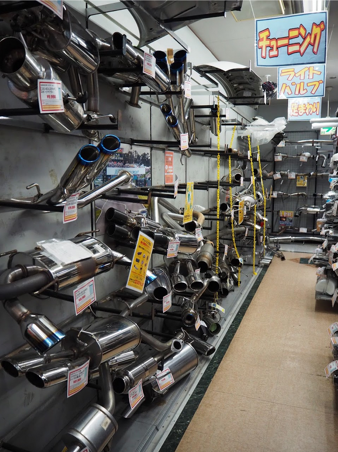 I visited a couple during my couple of trips to Japan for a lark, and I was like a kid at a candy store seeing all the various body kits, rims, mufflers, performance parts, steering wheels and everything else in-between, specifically targeted to all the JDM hero cars, just sitting on shelves and wall racks in a standard retail store.