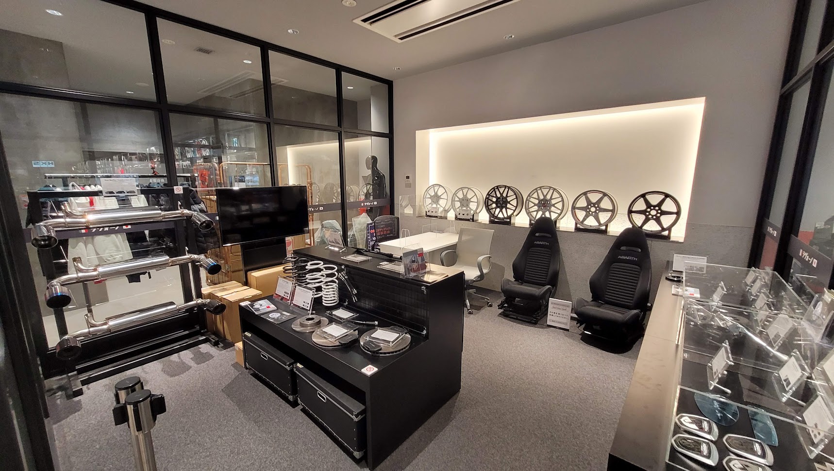 Then you go upstairs into the shop and as Harper mentioned - there's just about every useful and useless car accessory you can think of, from wiper blades to leds, to dashboard organizers to cleaning equipment and in-between. There was even a sizable clothing section, should you wish to accessories your outfit with your ride.