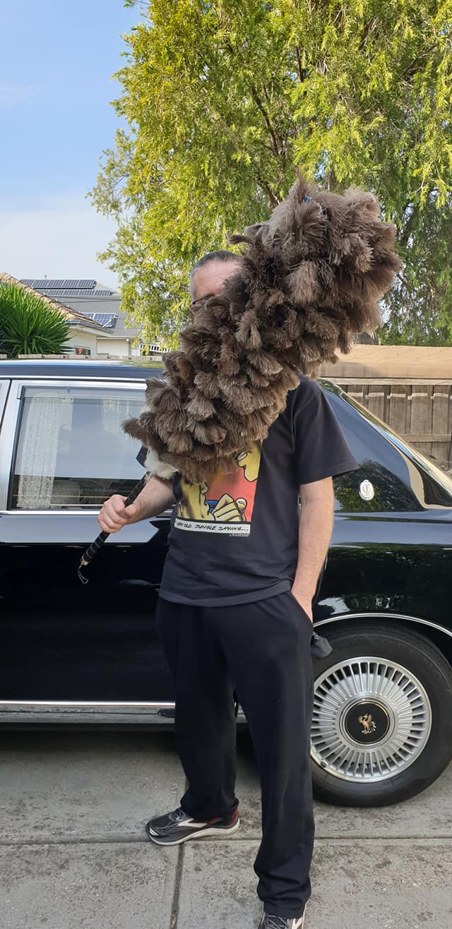 And whilst the owner of the car was off bonking his mistress, it was the drivers responsibility to stay with the car and keep it clean and tidy. Ostrich feathers are the best dust removers with the softest feathers that will not scratch paint.
