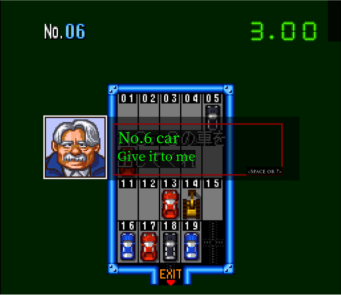 The way the game works is the old guy asks you to retrieve a car with a certain number, and you have to slide the various platforms around to get the car to the exit.