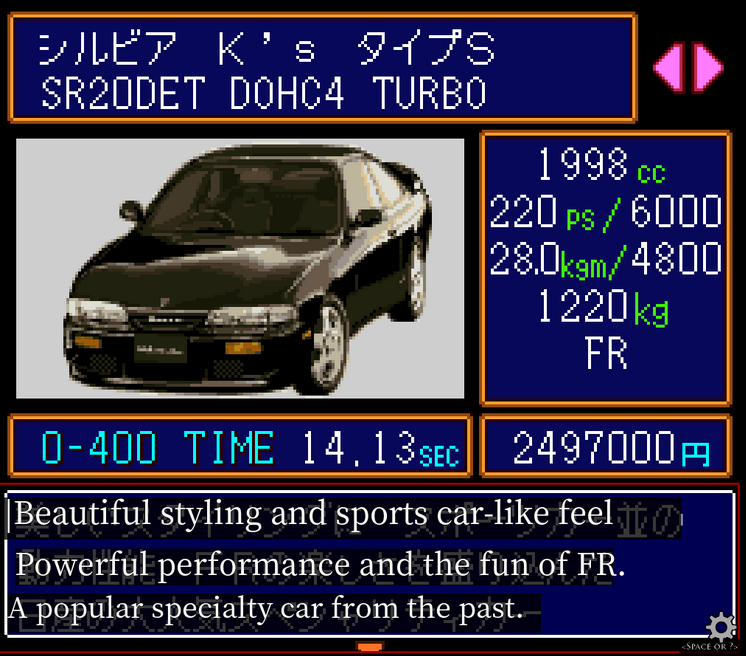 Ahh the Silvia Turbo. A beautifully refined car, and gods gift to drifting. We've encountered Silvia S13s in the first two games, but haven’t had the chance to get one for ourselves yet.