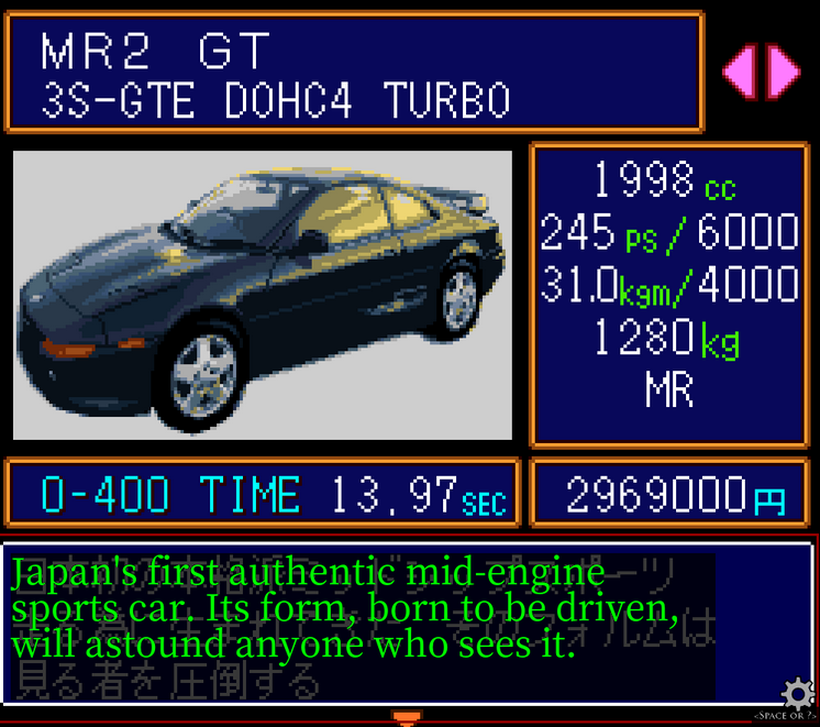 This beast shares the same engine as the Celica GT Four but in a horizontally mounted, mid engined rear wheel drive configuration that makes for amazingly sharp handling and track performance, with the occasional tendency to kill its driver.