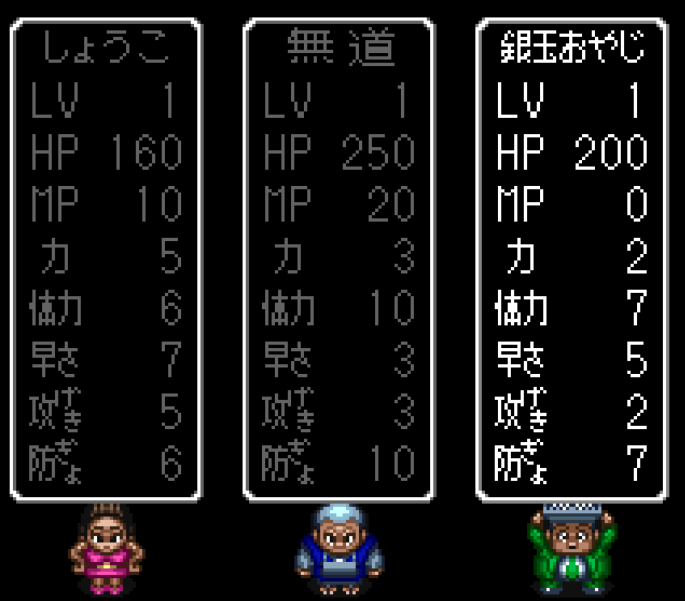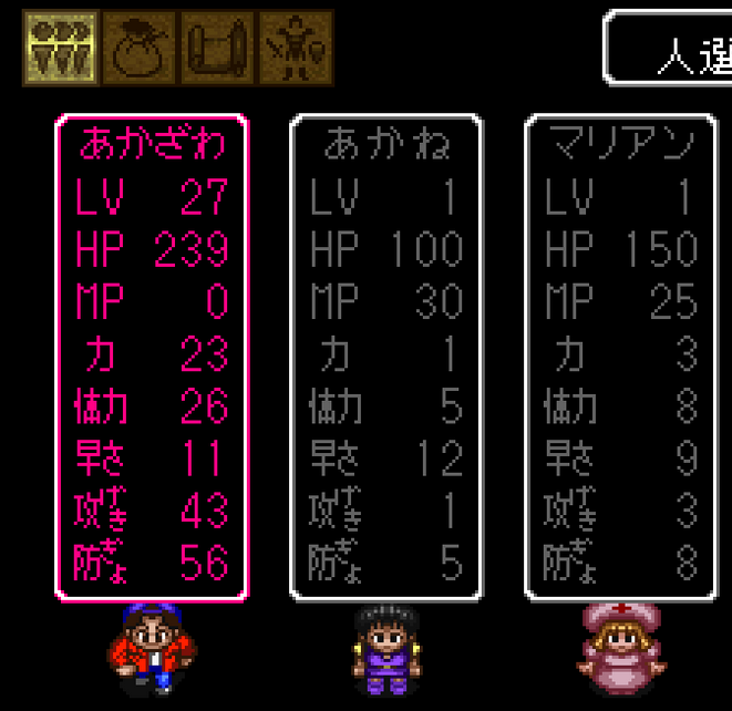 And there we have it. Cutesy JRPG versions of our party members and their stats. We really are choosing a battle party!