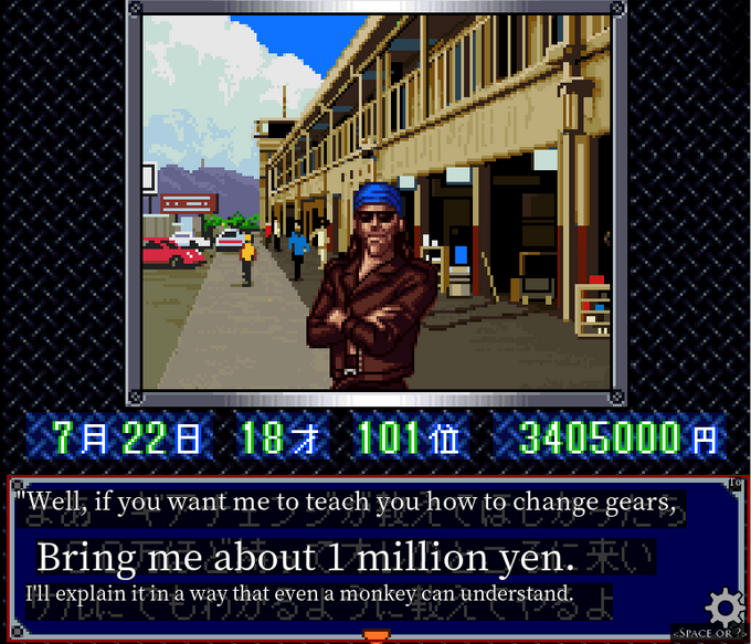 Well, if you want me to teach you to change gears, bring me about 1 million yen.