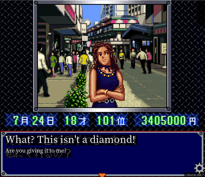 Let's give her the Diamond Relation, which I'm assuming is the diamond ring we bought earlier.