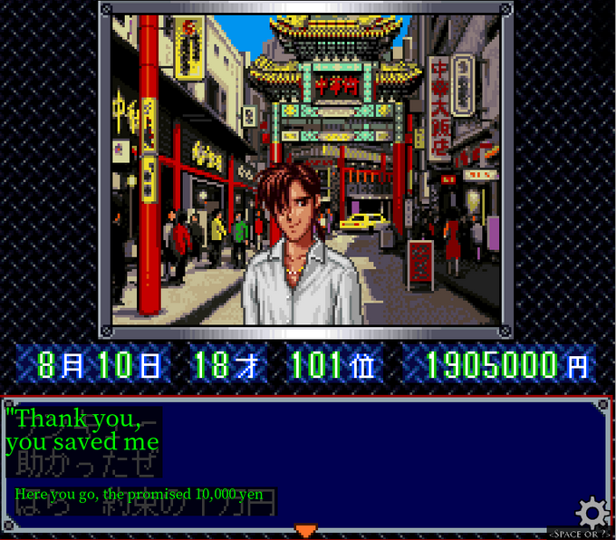 Oh well. Give me a ride to Chinatown. I'll give you 10,000 yen