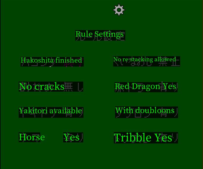 Okay. It appears we have a bunch of options we can set for the game. Whether we want dragons or doubloons, yakitiri or horse.