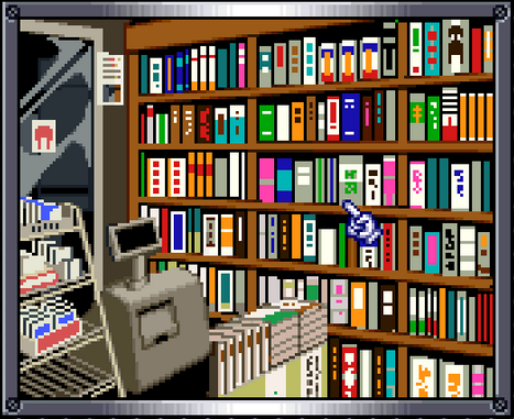 We're in what looks like a small bookstore, and have once again been given a cursor.
