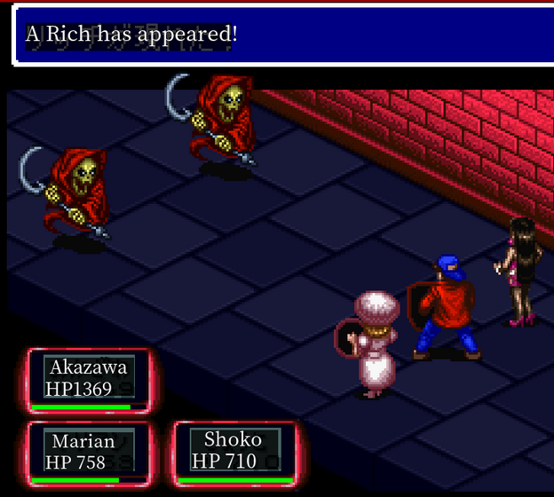 As such - things are going very slowly at the moment in the RPG mode. We're up to floor 15 of 18, and the game has become very difficult. There's a lot of new enemy types, though for the most part they're just higher powered variants of ones we've seen before, like The Rich here…