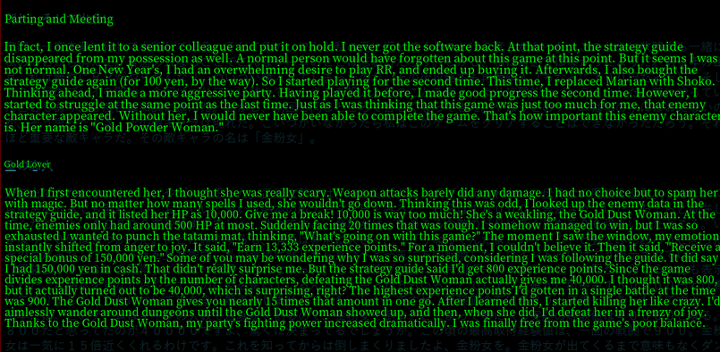 So, like our Japanese fan site friend, I started to purposefully seek out the Gold Lover and ‘kill her in a frenzy of joy’ (his words).